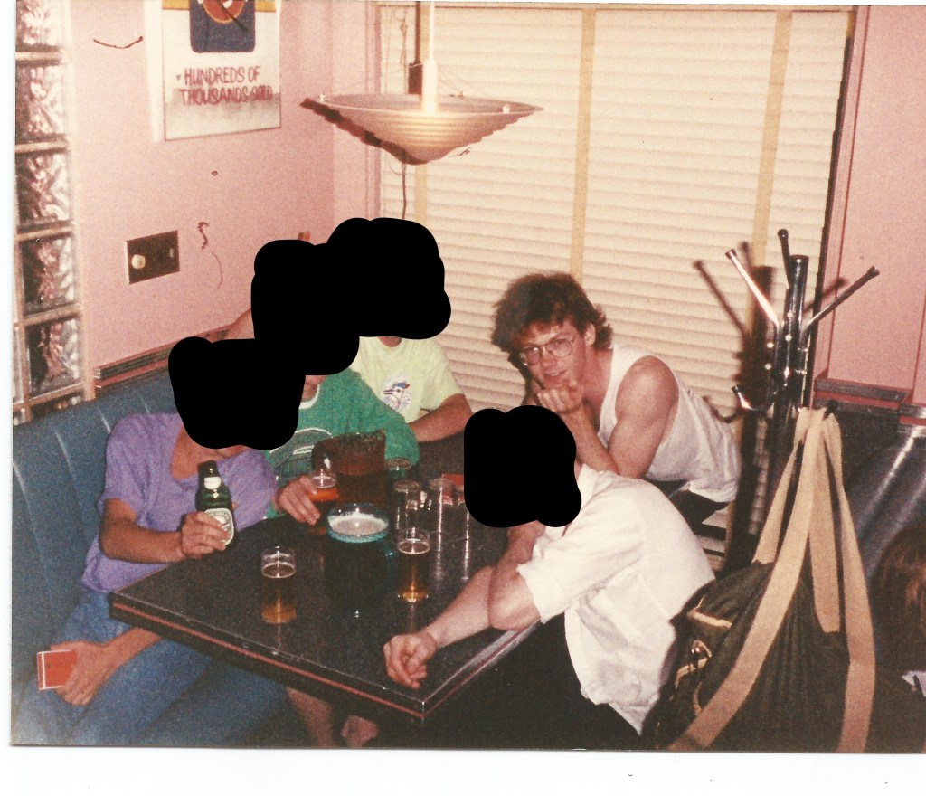One summer night four of us committed to an overtime stint whereby we’d be paid to stay late and clean the wads of gum stuck underneath the tables (the gum was given out with meals as part of the establishment’s Archie comics aesthetic).   The bartender Ray and I, along with two busboys Hutch and Scott, took on the job because of the promise of free beer.  Ray had also deduced how to access the forty-ouncers kept locked in the liquor cabinet:  by easing out of their storage slots the bins of chocolate chips, marshmallows, and other delights sprinkled on our allegedly world-famous sundaes, he could reach down to get the adult treats stashed below.  So we scraped off all the gum over a few hours, or maybe just some of it, I can’t remember and who cares now, all the while quaffing brew and doing shots of Johnny Walker and his brothers Black and Red.  As dawn broke we stumbled back for more partying at Ray’s place in the neighborhood of Lower Town, adjacent to the touristy Byward Market where the restaurant stood, although Hutch and I showed up there first and Ray and Scott were somehow waylaid.  Sitting outside I dispensed to Hutch my philosophies of life for a while, as we awaited the missing Scott and Ray. Hutch was a bit younger than me, so I solemnly slurred on about the purity of random experience and the grand cosmic purpose of getting regularly fucked up, adapted from my readings of Jack Kerouac and Zen and the Art of Motorcycle Maintenance. Credit to Hutch for listening politely, instead of pointing out that I was a twenty-five-year-old service worker pissing his life away on intoxication and dried bubble gum.