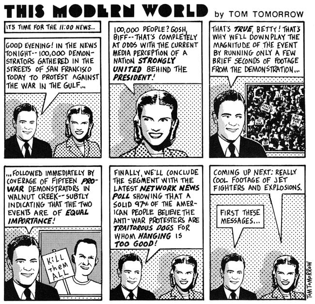 What’s ironic here, of course, is that pre-Twitter, pre-Facebook, and pre-internet, the danger to democracy from biased media and a compliant press was a staple theme of political theorists. Everything from the health risks of tobacco and the womanizing of John F. Kennedy to the futility of America’s wars in Vietnam and Iraq were said to be intentionally ignored by a journalistic establishment beholden to its real masters in business and government. And not just supposed pillars of integrity like the New York Times, either, but advertising, Hollywood movies, and school textbooks were commonly decried as mere propaganda for a ruling elite, reinforcing a capitalist, consumerist, patriarchal status quo so pervasive that most in the audience never thought to question it.